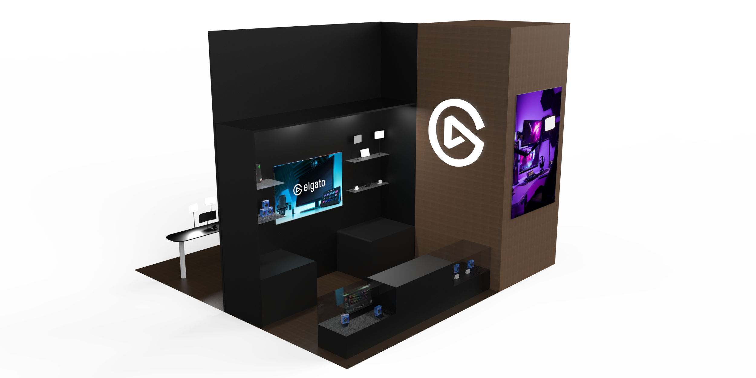 Elgato Booth Design: A trade show display concept designed for Elgato. I focused on product placement, branding integration, and creating an immersive user space.