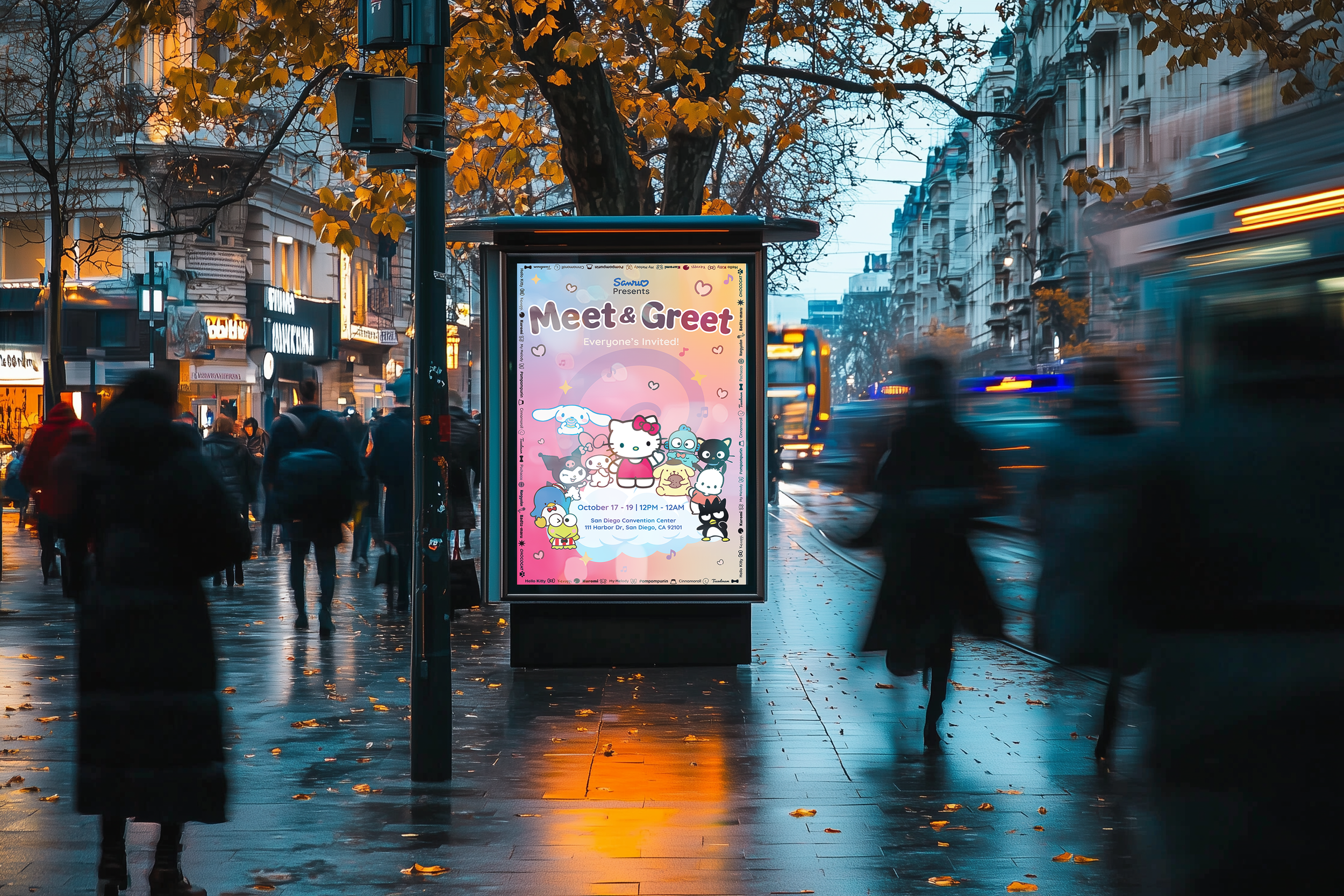 This project challenged us to create an expressive typographic poster series and a complementary motion piece that captured the spirit of an event or experience. Drawing inspiration from my own experience attending TwitchCon, I imagined what it would be like if Sanrio collaborated with Twitch to host a Sanrio Meet & Greet at the convention. The concept envisions a vibrant fan event where attendees can interact with beloved Sanrio characters through panels, photo ops, and live-streamed experiences. The posters capture the playful energy of both brands, celebrating creativity, connection, and community through expressive typography and color.